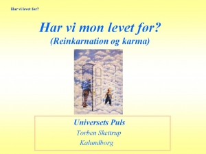 Det fjerde foredrag handler om reinkarnation og karma. Der er mange tusinde beretninger fra mennesker, der har oplevet at huske episoder fra tidligere liv. Mange af disse er også dokumenterede, idet man har fundet frem til beviser for deres beretninger. Især børn har været undersøgt af forskerne. Man har bl.a. fundet modermærker, ar og mærker på kroppen efter skader i tidligere liv.