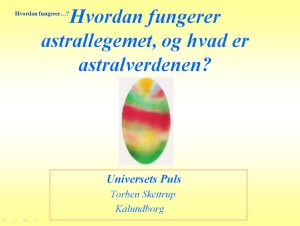 Det første foredrag er valgt pga. emnets vigtighed. Der er så mange mennesker, der går rundt og har angst for døden. Dette skyldes uvidenhed om, hvad der sker, når man dør. Imidlertid er der rigtig mange beretninger om dødsoplevelser. Da de i sagens natur må være fortalt af folk, der er genoplivede, har beretningerne fået betegnelsen nærdødsoplevelser. Disse utallige fortællinger har mange fælles træk og meget tyder på, at man lever videre efter døden som en sjæl.